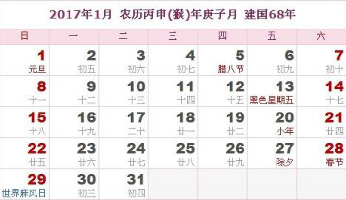 360安全基地提供2017年日历打印版下载免费word版文件下载。2017年日历表格A4打印版是最新版的2017年日历表,此款日历表包含2017年节气、节假日,非常值得大家去下载打印。2017年为农历丁酉年(鸡年),想要知道2017年最新法定节日假期话,就快点来免费下载。
